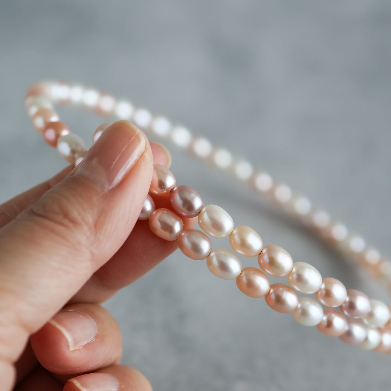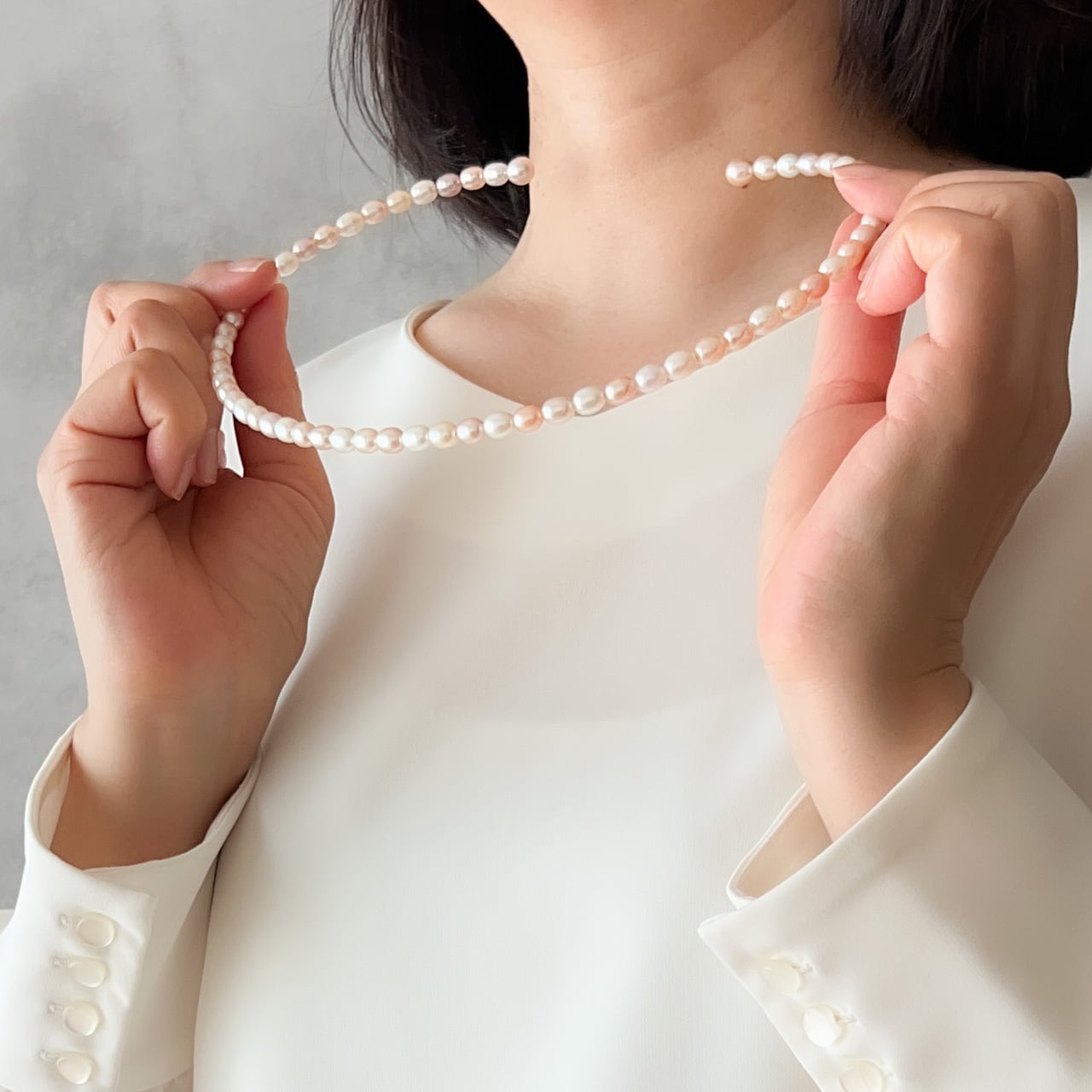 ※淡水パールは形や輝き等について個体差がありますので、ご了承ください。小さな傷やえくぼが見られる場合があります。天然素材の良さとしてお楽しみください。