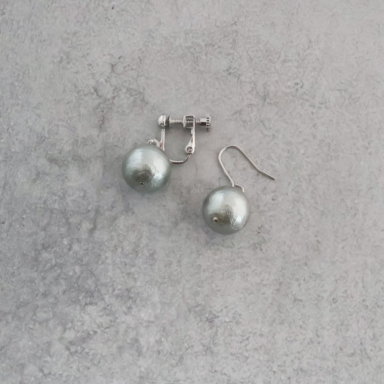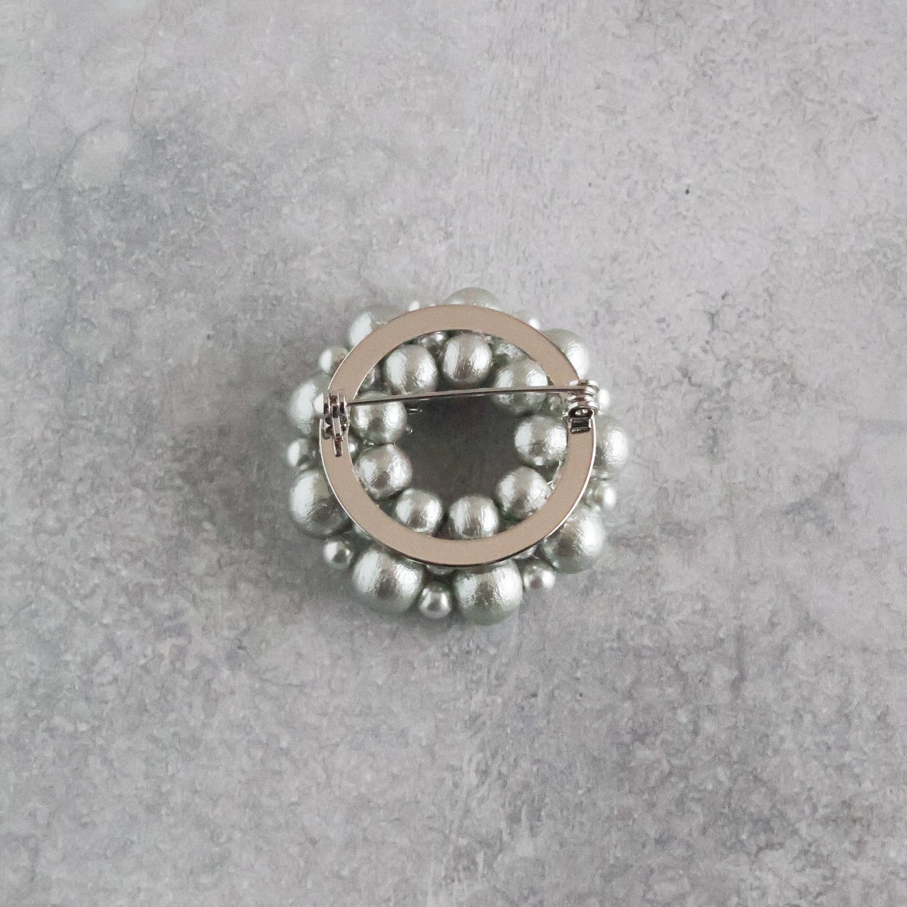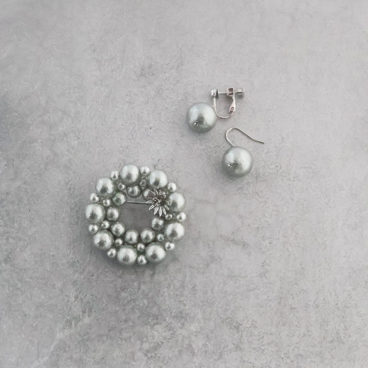【期間限定/セット割】コットンパールブローチとコットンパール 一粒 イヤリング(ピアス)のセット(グレー)