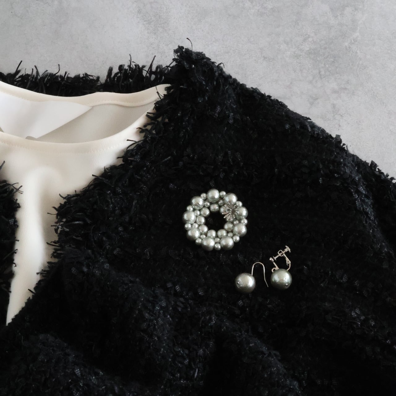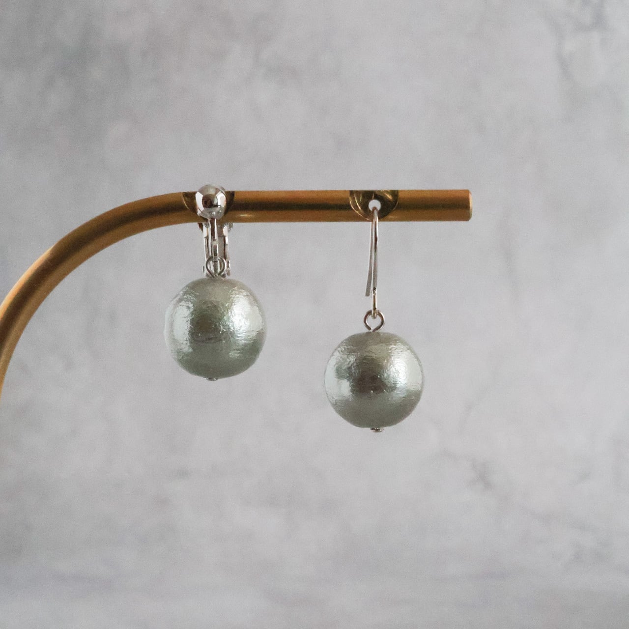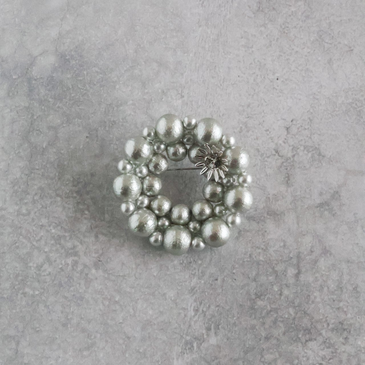 【期間限定/セット割】コットンパールブローチとコットンパール 一粒 イヤリング(ピアス)のセット(グレー)