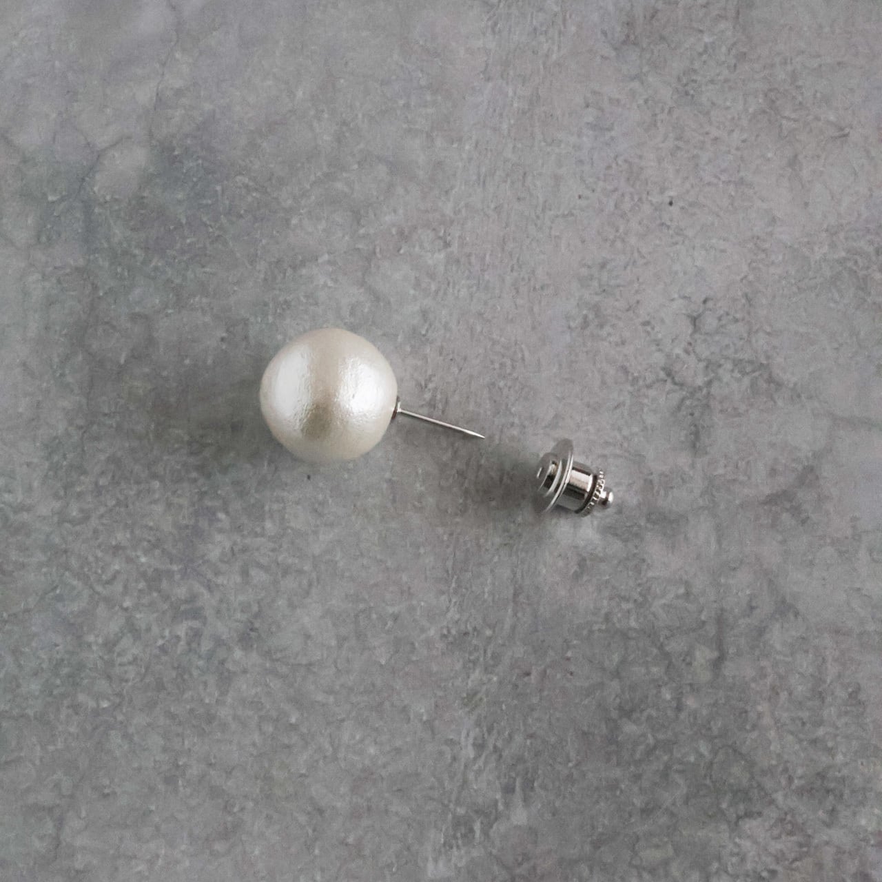 ひと粒でいつものジャケットが見違える、コットンパールのピンブローチ。