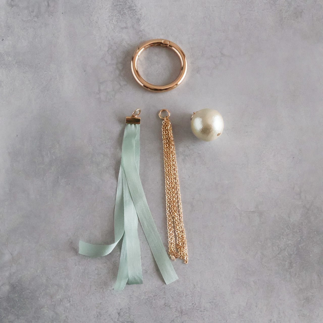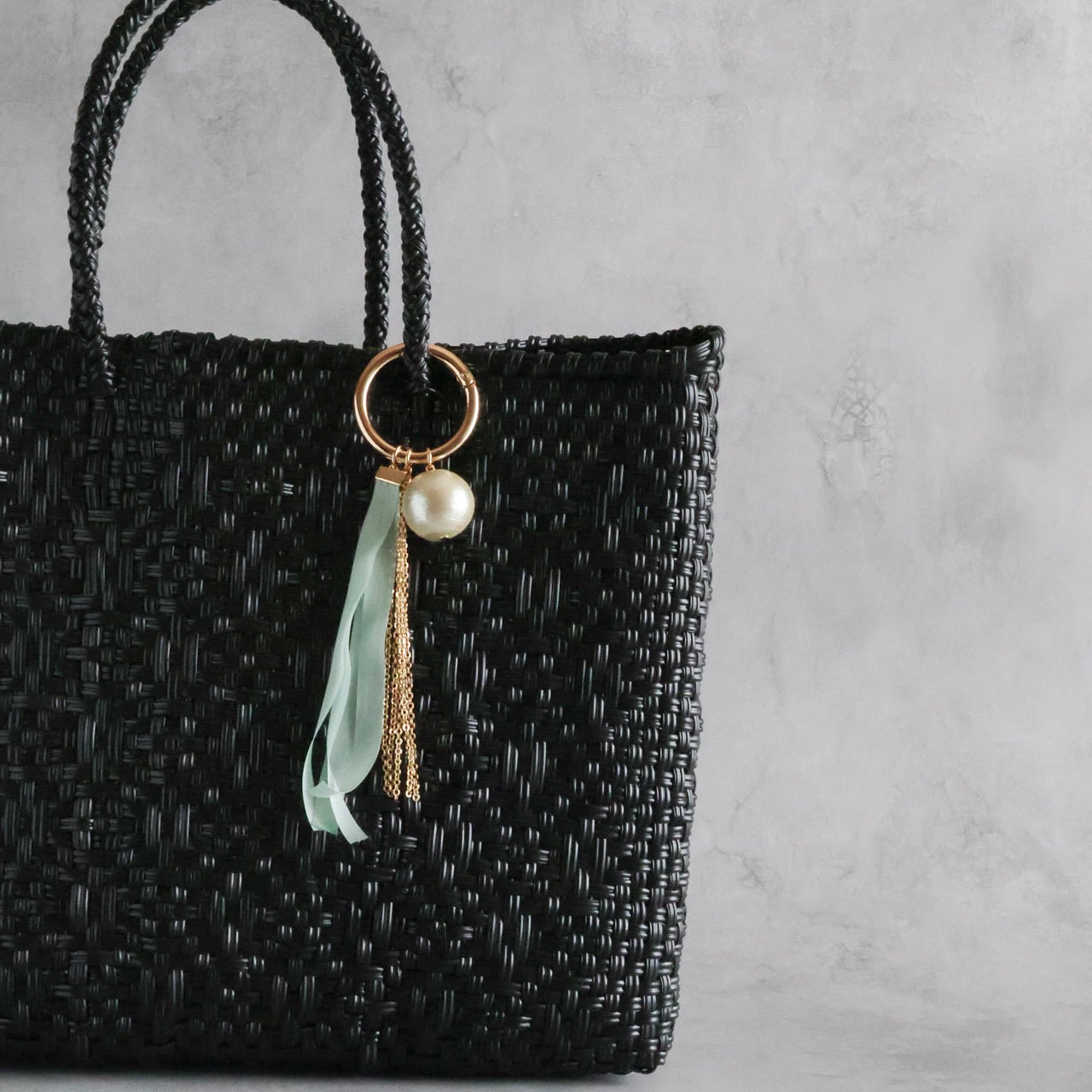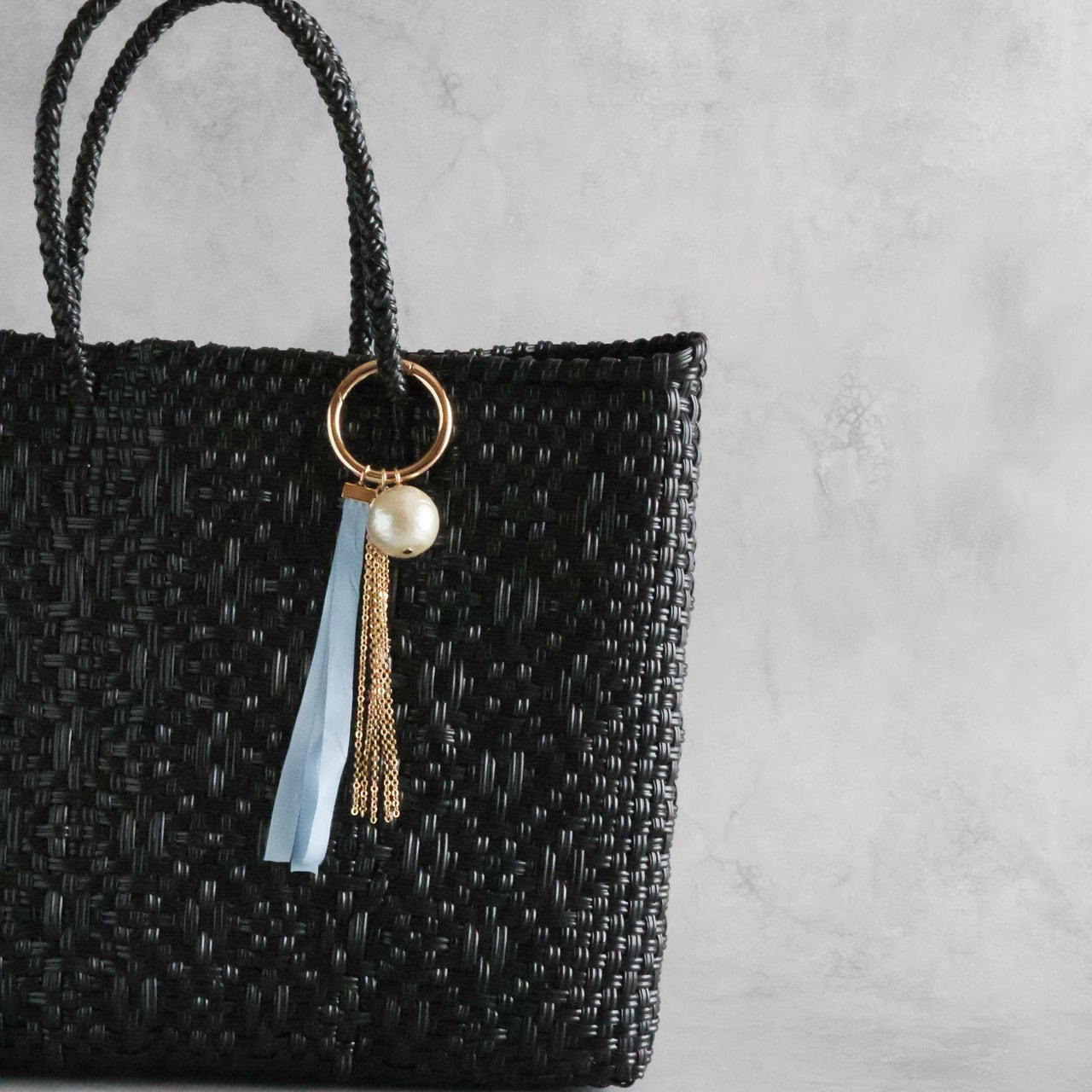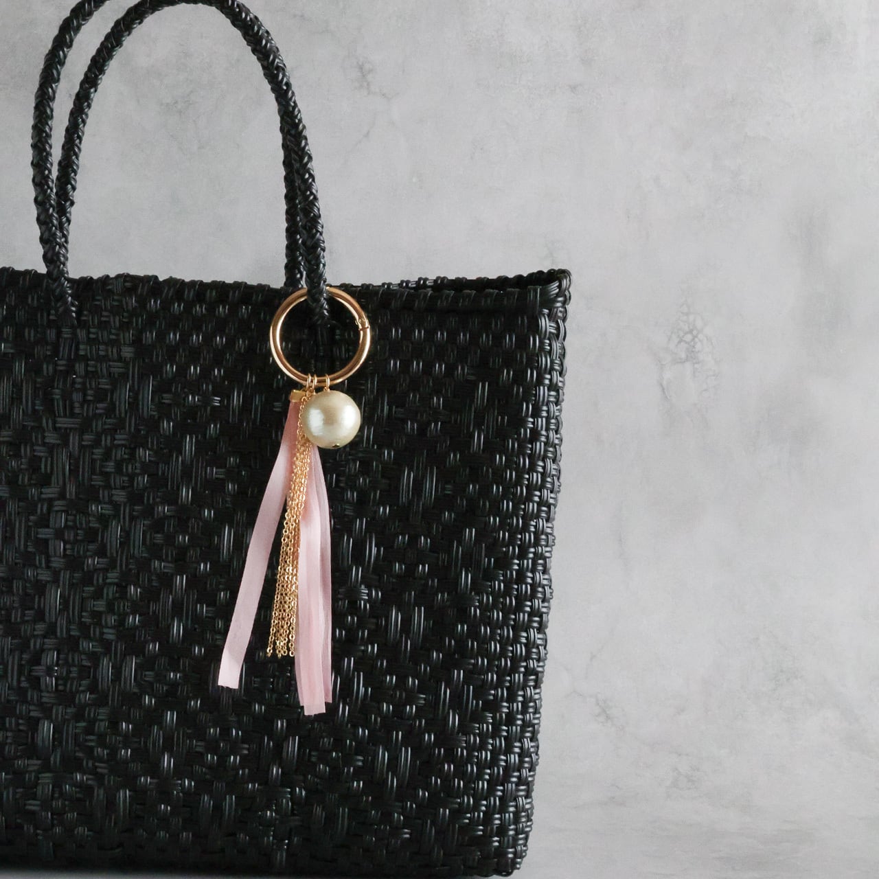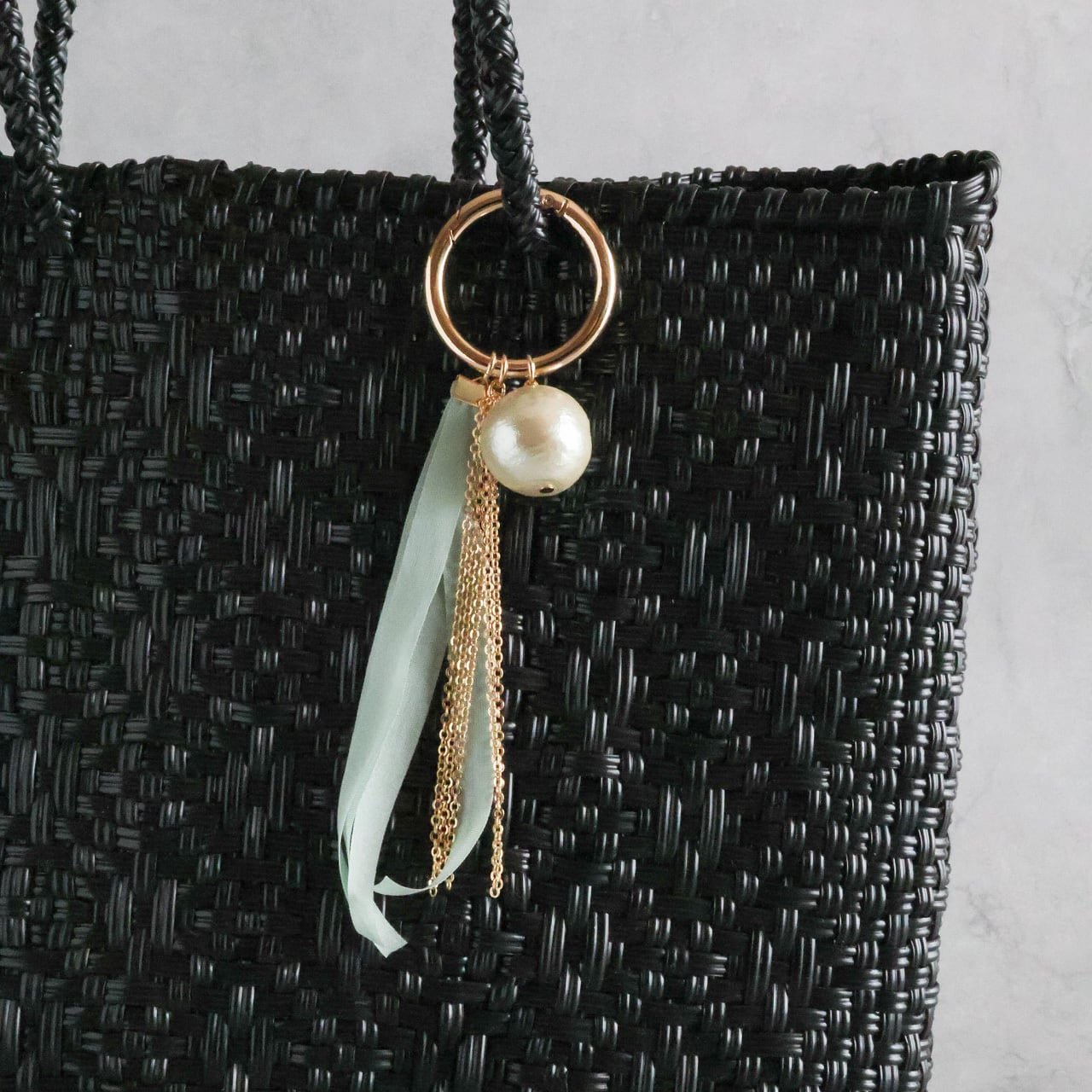 そんなお声から、いつものバッグに上品な華やぎを添えるバッグチャームを作りました。
