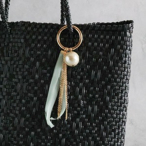 <Early spring 2026年3月新作>大粒コットンパール バッグチャーム シルクリボン&チェーンタッセル付き