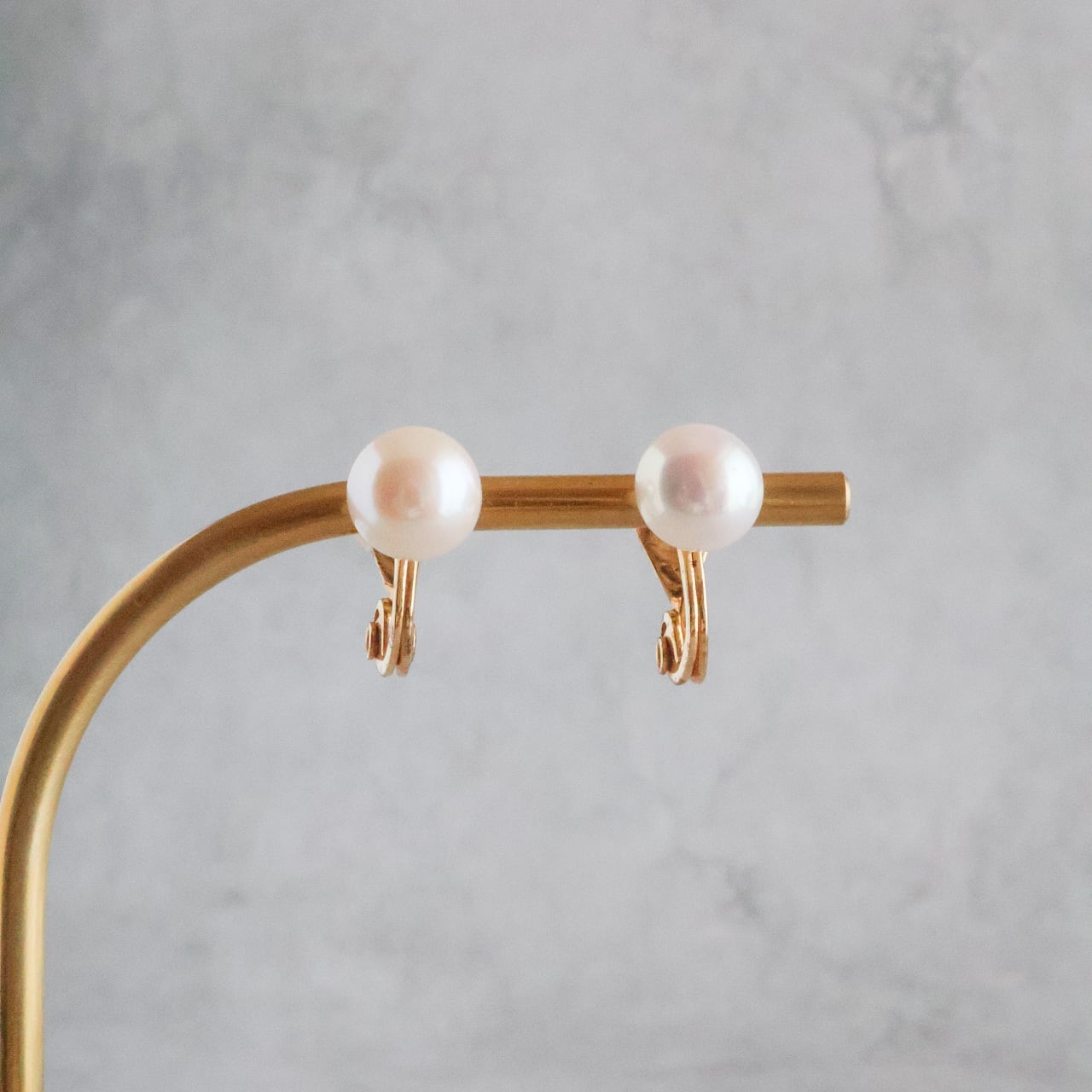 耳にフィットするボタン形の淡水パールイヤリング(ピアス)